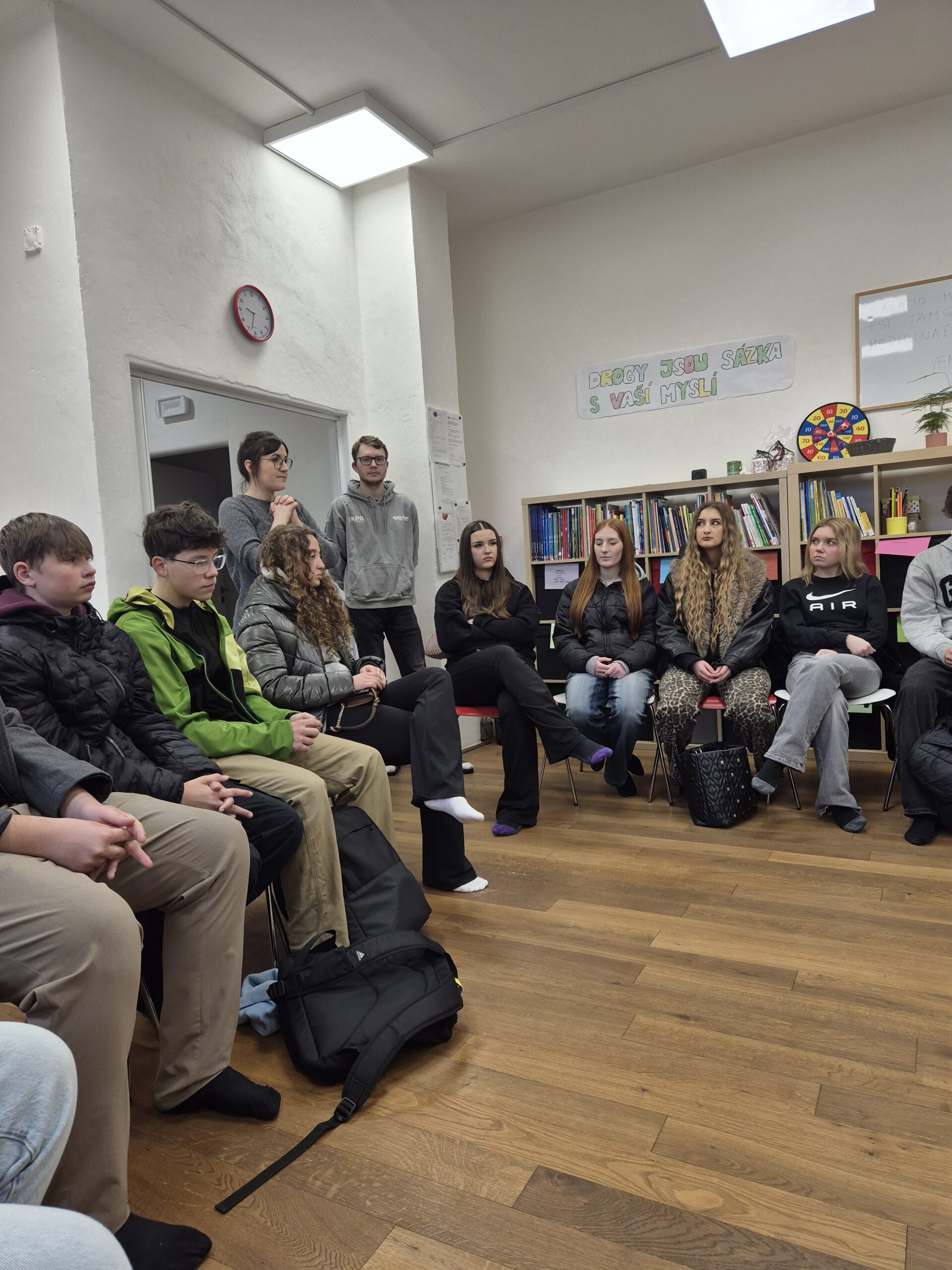 Sice apríl, ale bez legrace dokonalý! Začali jsme vážněji – ve Středisku prevence a léčby drogových závislostí Drop In na semináři Základy obecných látkových závislostí. Pošmourné místo, kruté osudy… i jinak rozverná, hlukově neztišitelná 1. A byla chvílemi zaražená. Už nikdy zelený bylinkový čajík ani malinové vapo, natož lok energeťáku, lidičkové! (O všem ostatním horším se špatně poslouchalo a ještě hůř se o tom píše.) Mozek se vyvíjí do 21 let, tlačte tam raději vzdělání 🙂