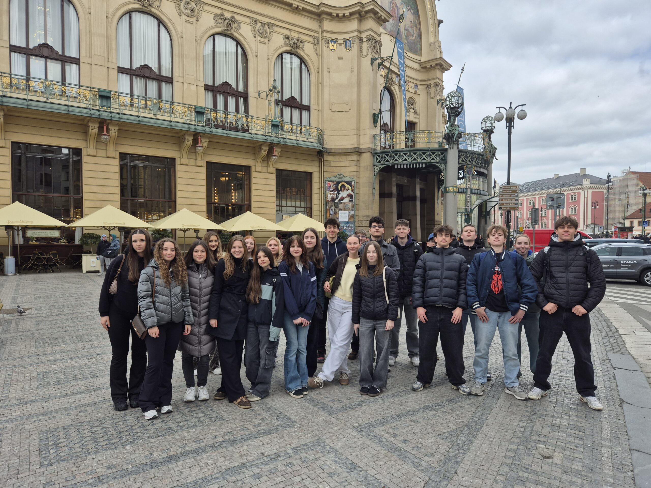 Romantičtější část dne, a to kulturně-historickou procházku Královskou cestou neboli historickou Prahou, jsme odstartovali před Domem U Hybernů. Opravdu jsme chtěli prostudovat jemnou dokonalost empírové architektury, ale vše bylo zakryto neprůhledným lešením. Nevadilo, další architektonické skvosty naší pouti až ke katedrále sv. Víta jsme již viděli v plné nádheře.