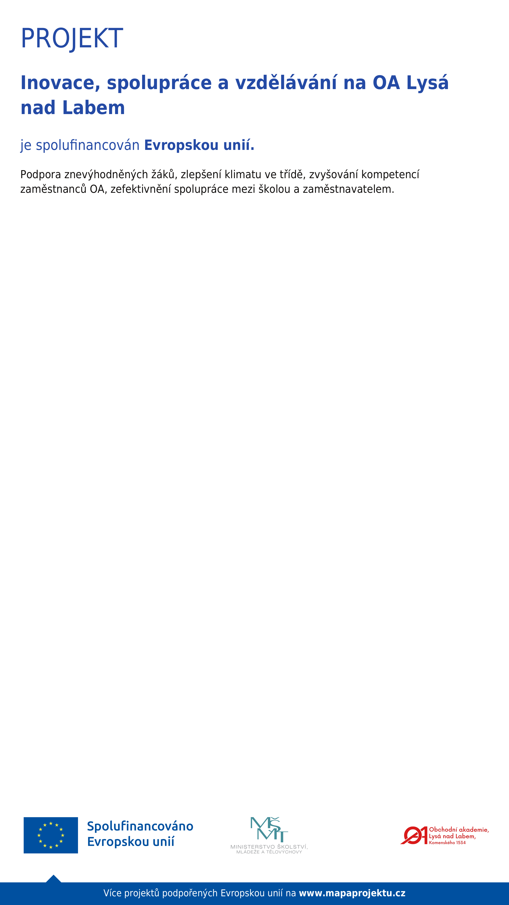 Název: Inovace, spolupráce a vzdělávání na OA Lysá nad Labem
