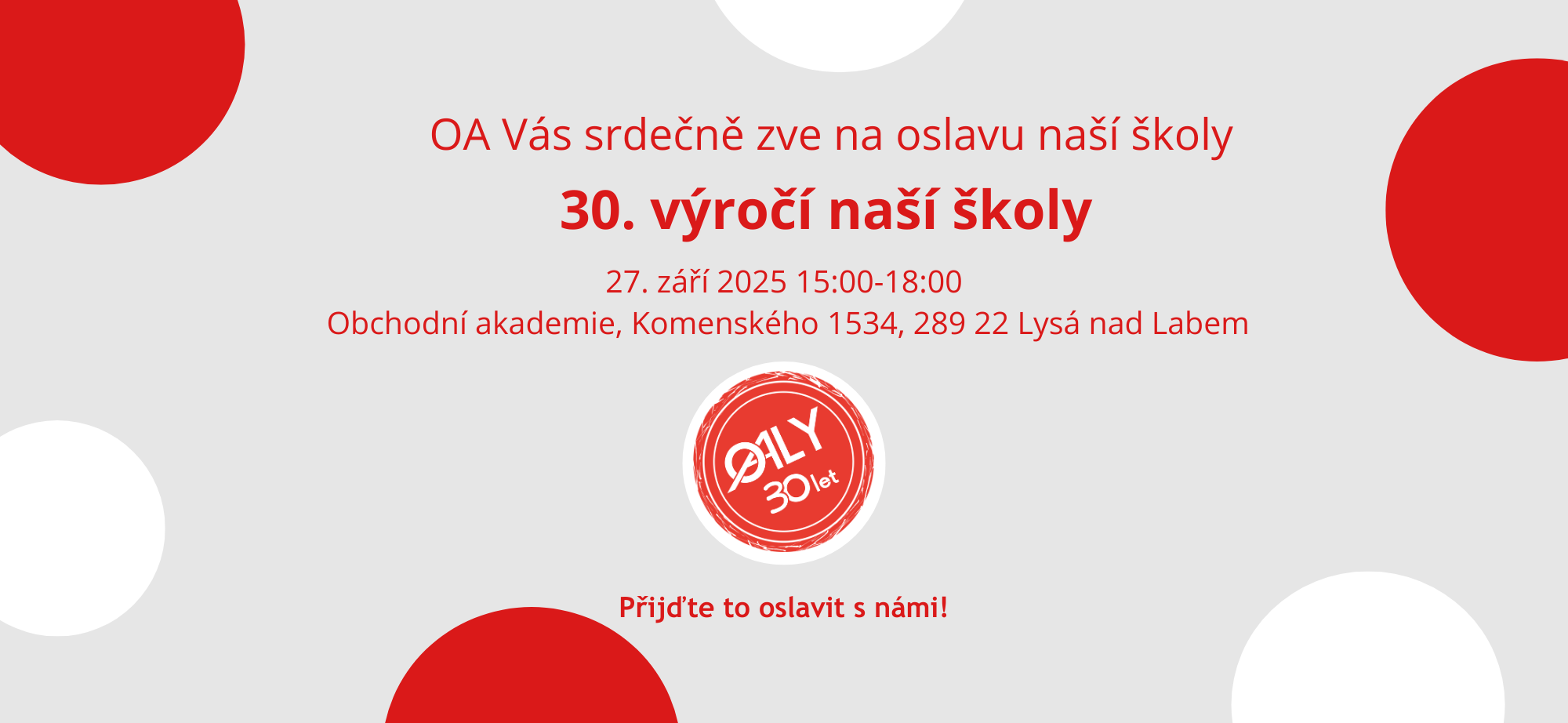 Připravujeme slavnostní den plný zážitků, hudby, setkání a vzpomínek. Chystáme pestrý program pro studenty, rodiče, absolventy i přátele školy.