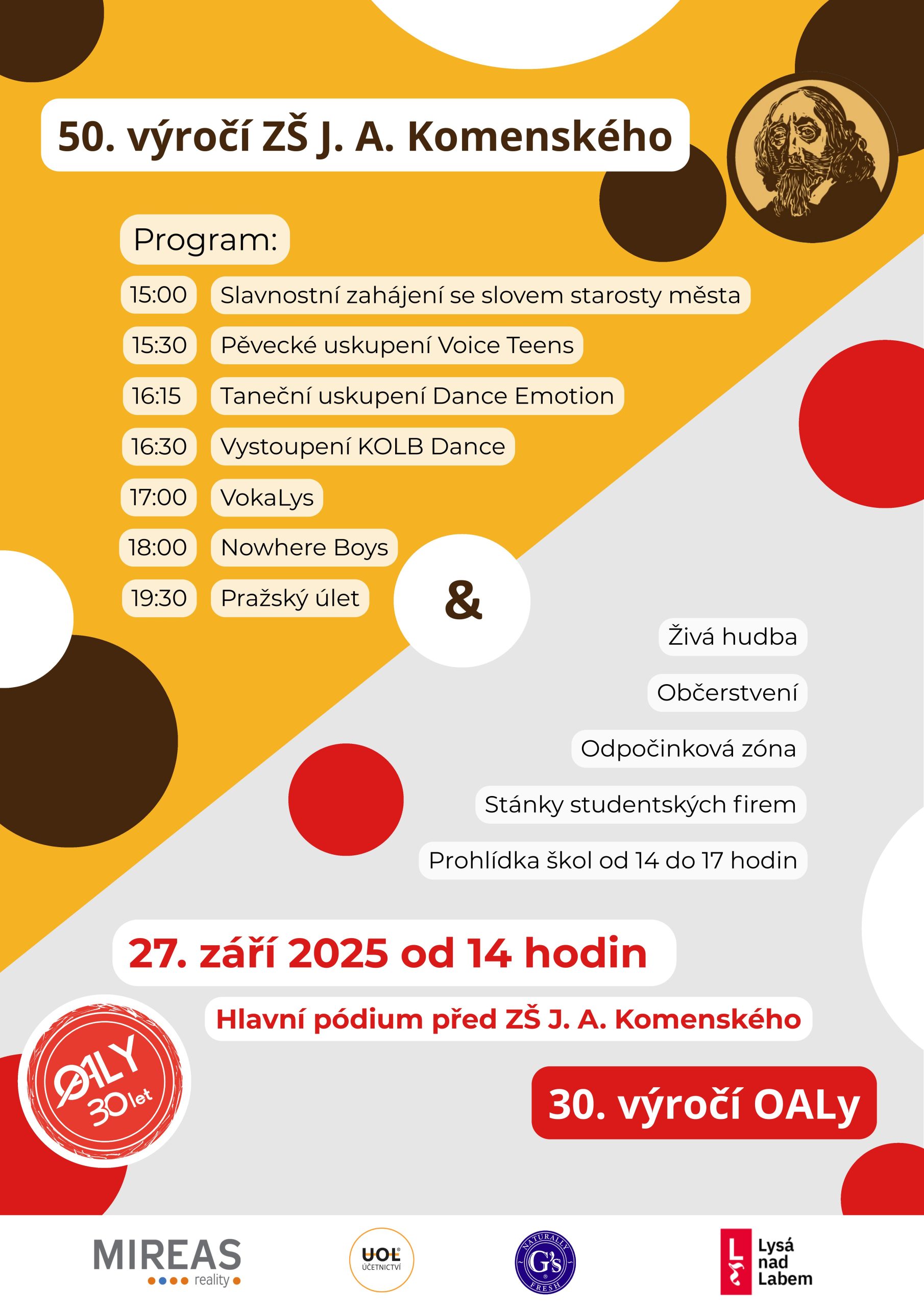 Při této příležitosti chystáme zahradní slavnost, která se uskuteční 27. 9. 2025 od 15:00 do 19:00 v areálu školy. Připravujeme pestrý program plný vystoupení a zábavy pro děti i dospělé.