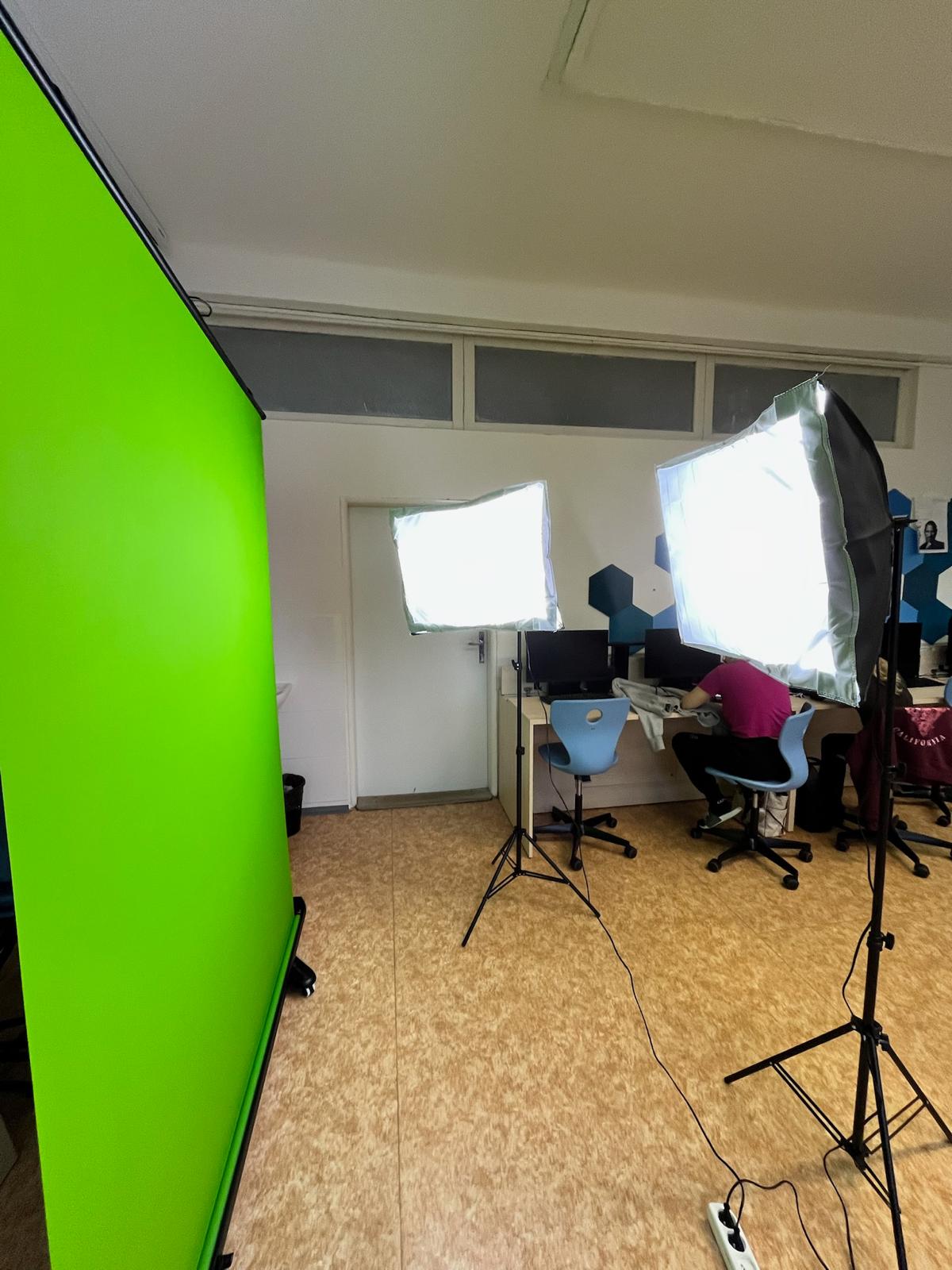 Součástí učebny je také green screen pro natáčení videí a focení, nechybí ani softboxy a kamery pro zajištění kvalitního osvětlení a záznamu. Tyto novinky rozšiřují možnosti výuky o oblast multimédií a digitální tvorby. Učebna je uzpůsobena pro kreativní projekty, natáčení prezentací i tvorbu obsahu na sociální sítě.
