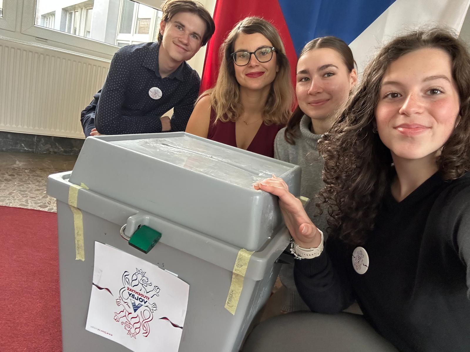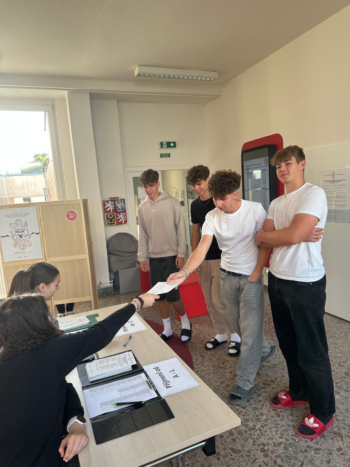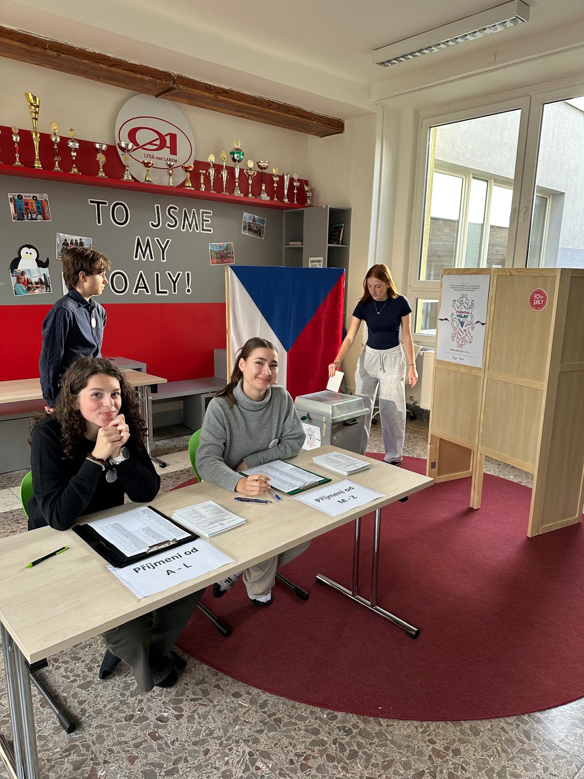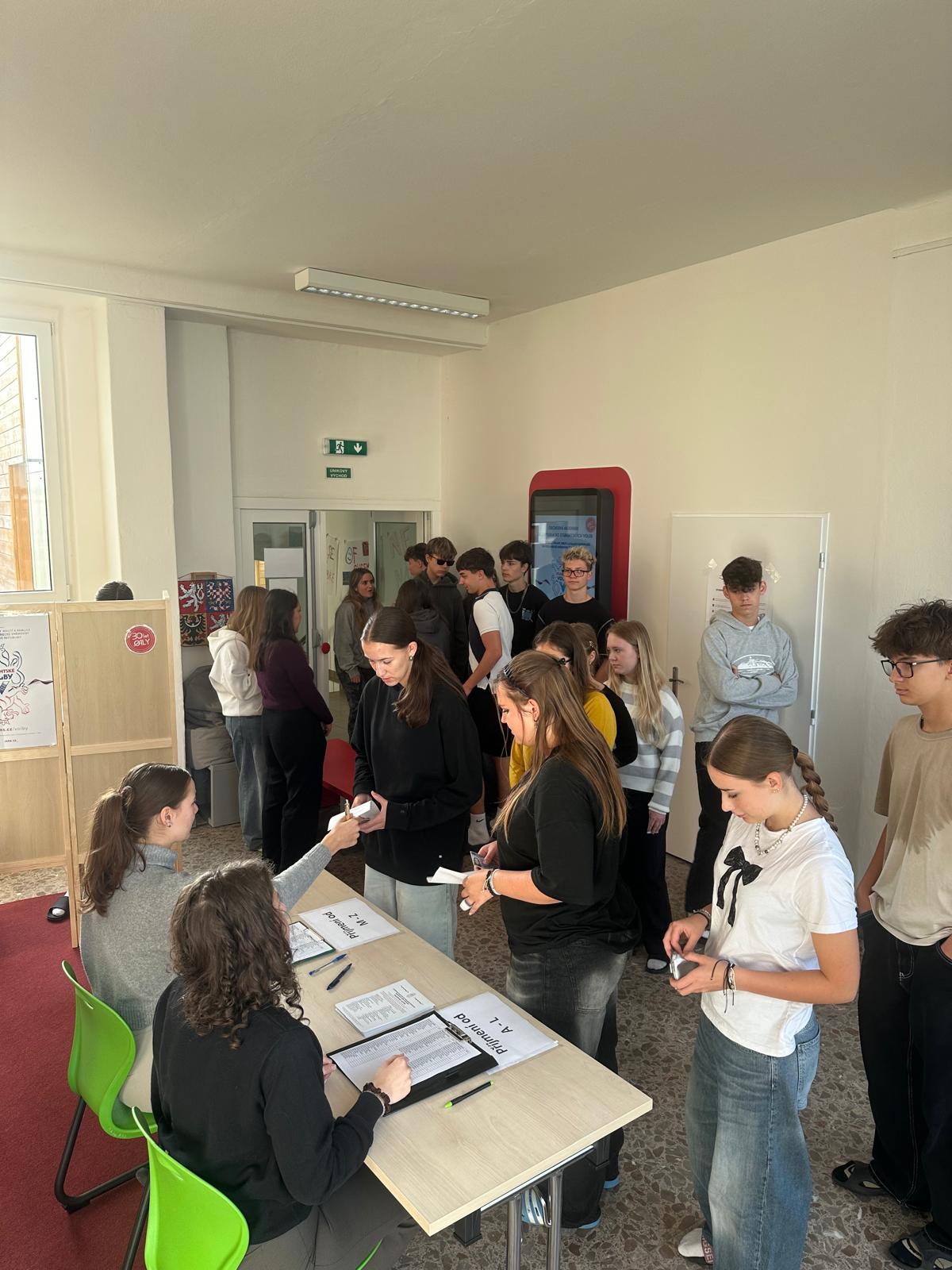 Ve dnech 17. 9. a 18. 9. 2025 měli naši žáci OALy možnost si vyzkoušet, jak probíhají skutečné volby do Poslanecké sněmovny. Vestibul se proměnil v plnohodnotnou volební místnost a voliče uvítala volební komise složená z našich studentů.